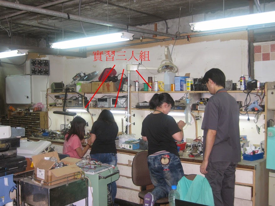 還是要同事善後啊,從後面報廢設備挖出一台舊款的,是故障報廢的,同事想說,可以試看看,拆高壓板上的變壓器換裝看看,看有沒有機會救回,不然真的跟人家借的,真要買了,這時給學生們再一次扳回一城的機會,請她們拆換電路板上的高壓變壓器,真的是認真,同時,我們也訓練得不錯,三二下,就搞定了,速度這麼快,不會是"電"過了的原因吧。